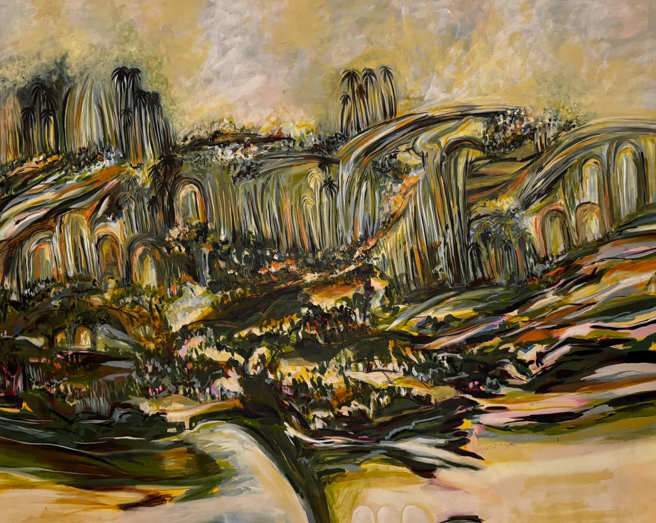 يعكس العمل الفني صورة من زيارتي الأولى منذ الطفولة للمدينة المنورة وحالة الدهشة والبهجة التي ملأت قلبي وعيناي فقد تملكني الشعور بعظمة المكان حيث المآذن الشاهقة, النخل الباسقات, الحدائق الغناء، وفود الزوار بملابسهم الملونة ولغاتهم المختلفة .. حين زرت المسجد النبوي ومسجد قباء والمساجد السبعة وشاهدت المحاريب المختلفة .. حين تلونت طرقات الحرم بألوان البضائع والمنتجات من كل مكان .. وددت بأن ينقل عملي هذا للمتلقي صور من ذاكرة طفولتي وحالة الدهشة والفرح التي غمرتني. كما تغمر الكثير من الزوار للمدينة المنورة لروحانية المكان ، وقدسيته، ولجماله وجاذبيته.