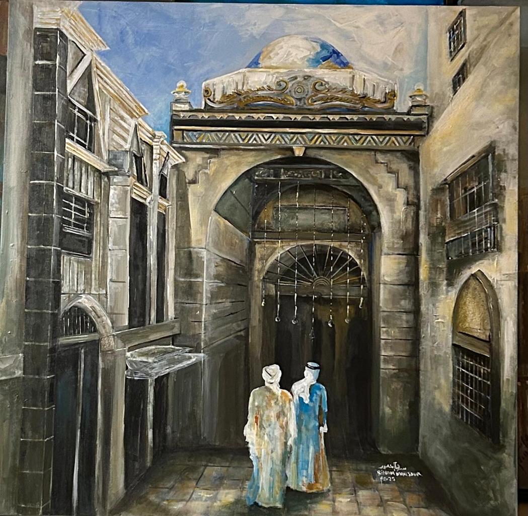 العمل يبرز قيمة المكان كذاكرة جمعية تحفظ قصص الأجيال، ويجسد دور الفن في إعادة إحياء الهوية العمرانية والتراثية للمدينة. الألوان الترابية والظلال العميقة تخلق حالة وجدانية تربط المشاهد بجلال المكان وسكونه، بينما السماء الزرقاء تعكس الأمل والاستمرارية