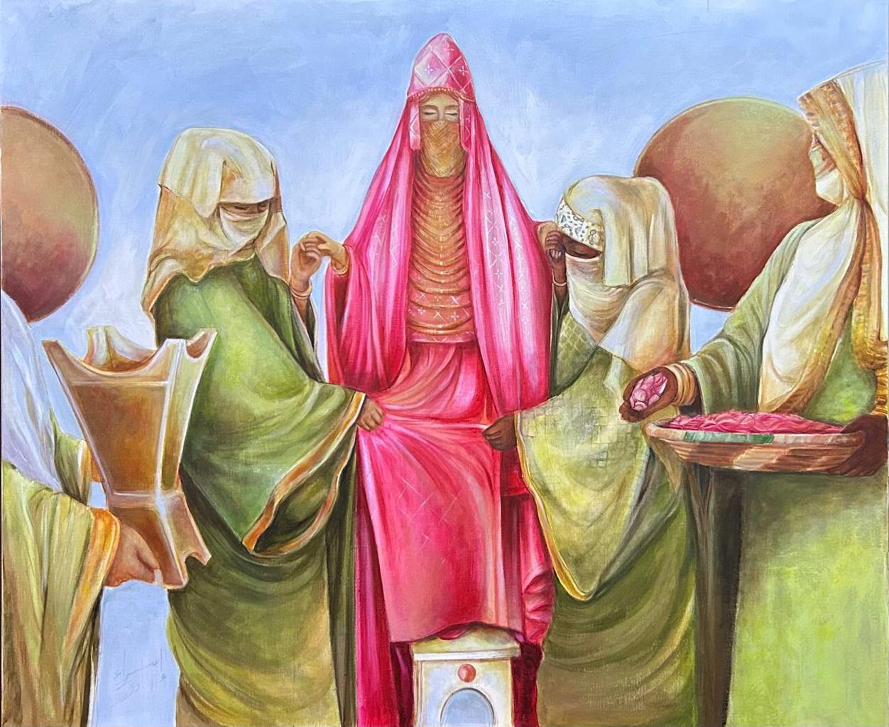 من خلال هذا العمل، أسعى إلى تجسيد مزيجٍ من الحياء والفخر والفرح الذي يميّز المرأة المدينية، وإلى أن أُعيد إحياء لحظةٍ من الماضي برؤيةٍ فنية معاصرة.