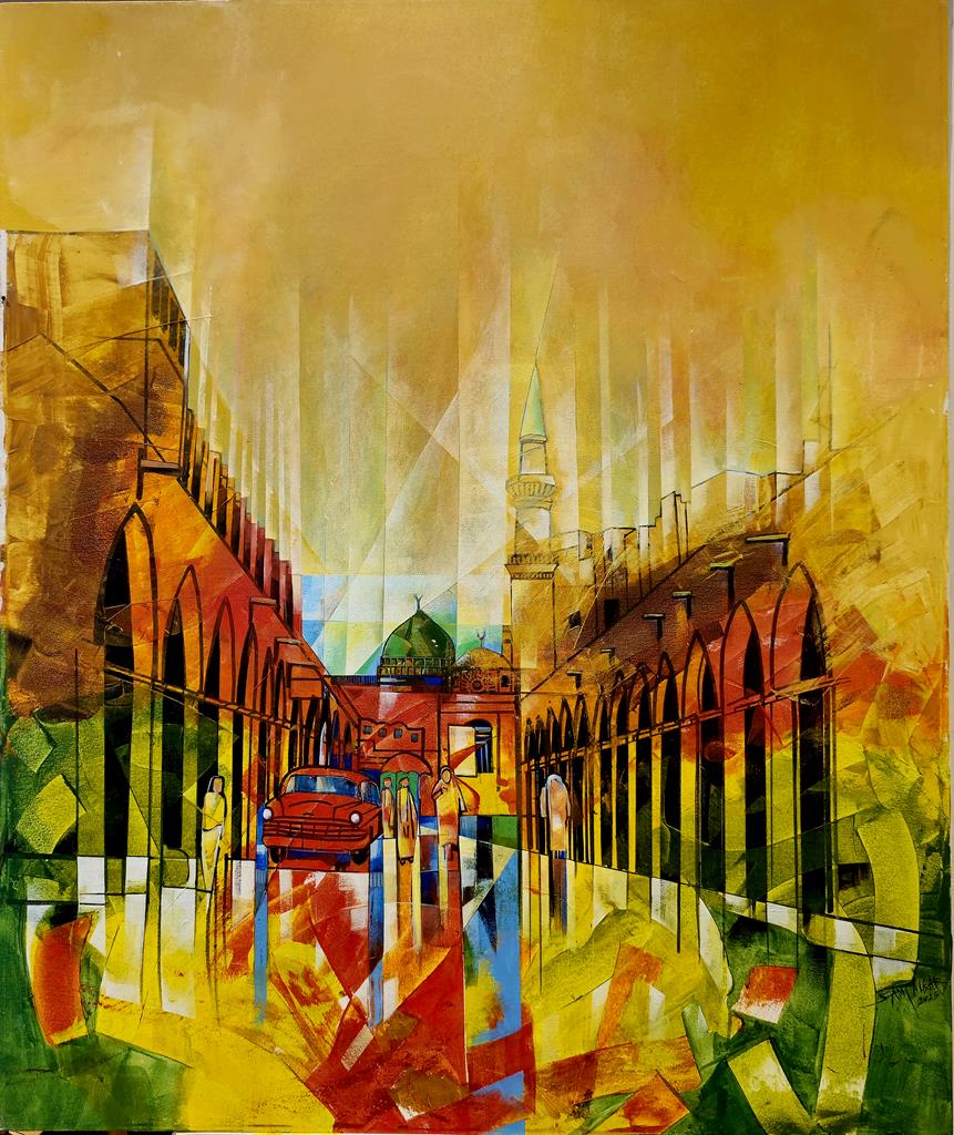 يصور هذا العمل مدخل باب السلام عبر شارع العينيه بالمدينة النورة وهي حارة من المدينة المنورة تنفتح على مدخل المسجد النبوي الشريف، في مزيج من البساطة العمرانية والروحانية العميقة. يهدف إلى إبراز رحلة الداخل عبر الحارة حتى يصل إلى فضاء النور والسكينة.